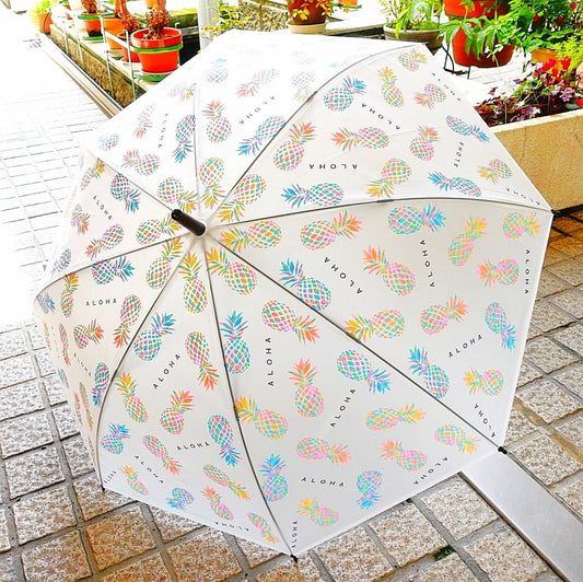ALOHA トロピカル雨傘 アンブレラ ビニール傘 パイナップル プルメリア モンステラ ハワイアン雑貨