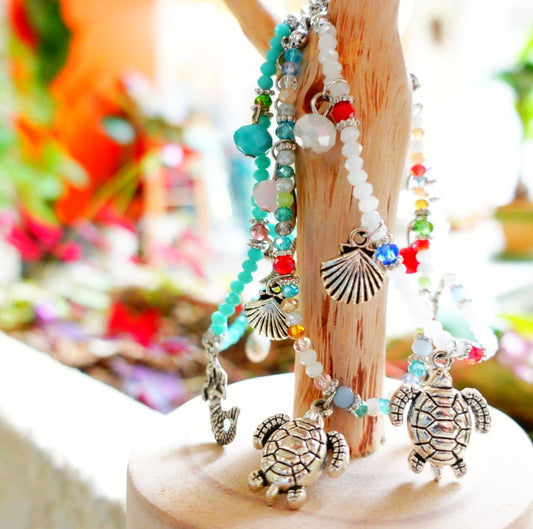 ハワイアン オールドビーズアンクレット ホヌ マーメイド パイナップル ヒトデ チャーム ハワイアンジュエリー アクセサリー New